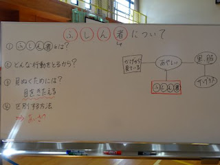 4限、学活。お楽しみ会です。先生が考えている答えを予想するゲームをしていました。